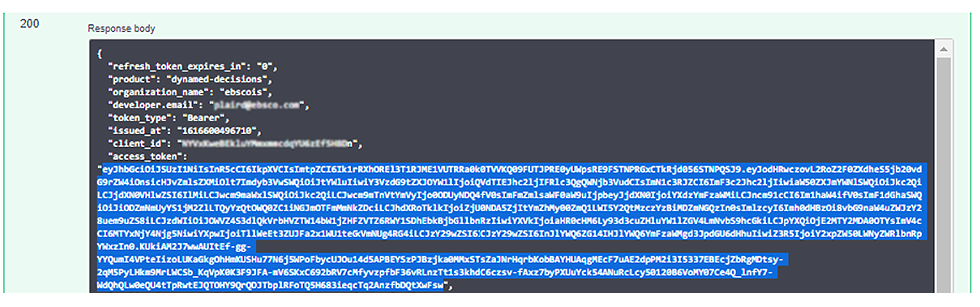 - Click the Execute button. The interface makes a request to the /token endpoint with your desired body parameters. A successful Response body is displayed.