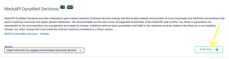 - Navigate to the MEDSAPI Dynamed Decisions API Reference.