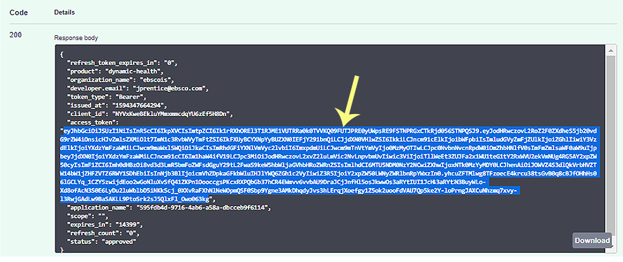 - Click the Execute button. The interface makes a request to the /token endpoint with your desired body parameters. A successful Response body is displayed.