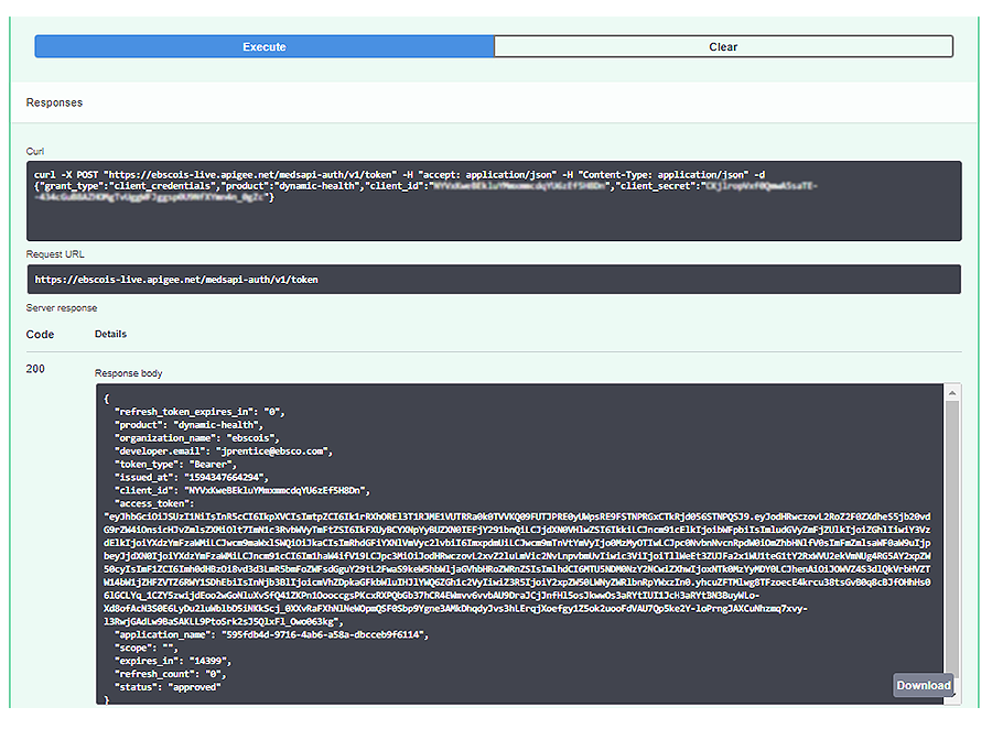 Note: You will need an authorization token from the /token resource to try any of the other resources in the MEDSAPI Dynamic Health API Reference.